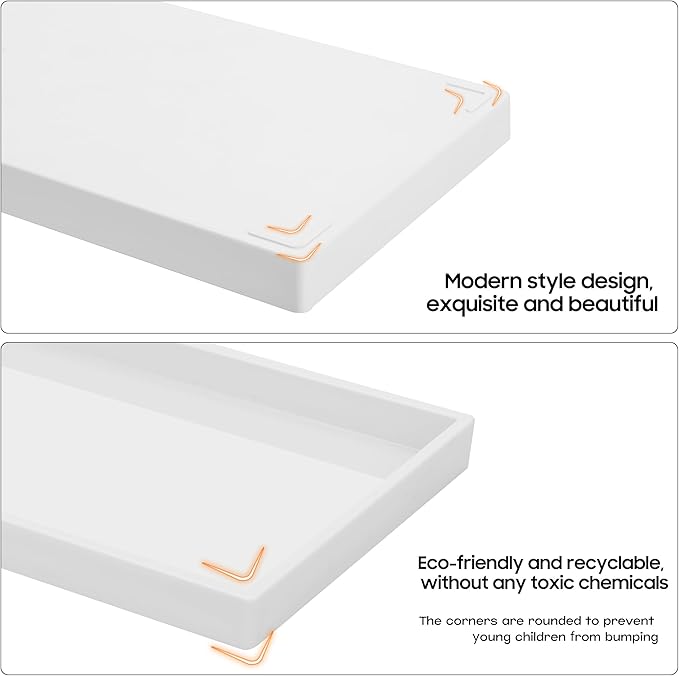 - Easy Clean:Waterproof design suitable for wiping with a damp cloth or rinse clean.Lightweight,resists warping in humidity and dishwasher safe.Recyclable,perfect as a bathroom counter tray,perfume tray or toilet tray