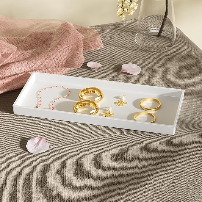 Vanity and Bathroom Tray, 11.8" ABS Countertop Organizer,Waterproof Vanity Tray for Toilet Tank,Perfume,Soap,Keys,Bathroom Accessories,Kitchen and Bath Trays,Non Slip Small Trays,White,2 Pack