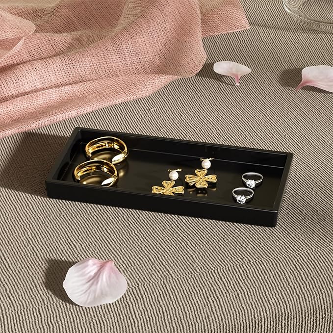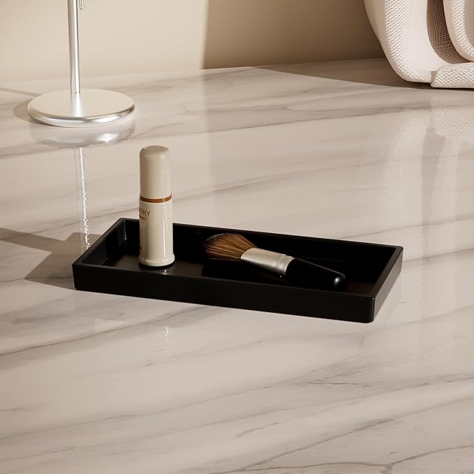 Vanity and Bathroom Tray, 6.3" ABS Countertop Organizer,Waterproof Vanity Tray for Toilet Tank,Perfume,Soap,Keys,Bathroom Accessories,Kitchen and Bath Trays,Non Slip Small Trays,Black