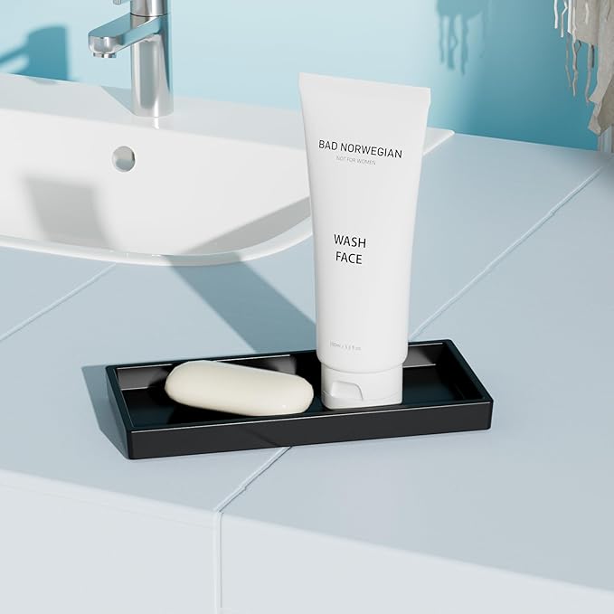 - Stylish and Hygienic Decor:Matte black finish pairs with marble bathroom accessories or minimalist decor.Use as a soap dispenser tray,trinket tray,or candle tray.Non porous surface can resist water accumulation,safe for humid areas like toilet trays