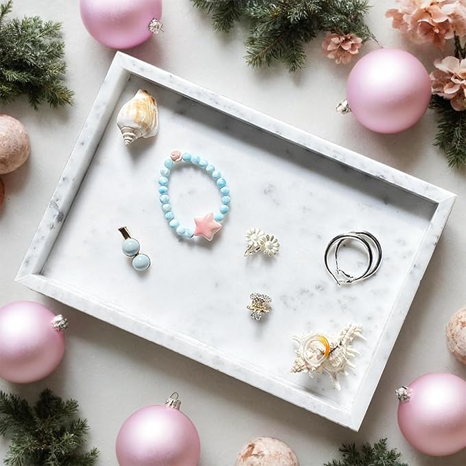 - 【VERSATILITY】- Perfect luxury stone tray for cosmetics, scented candles, jewelry, soap bottles, key trinket, beauty products, plants, food and more. Widely used in bathroom vanity, dressing table, toilet, wash basin, living room, bedside table, kitchen and etc.
