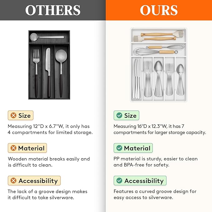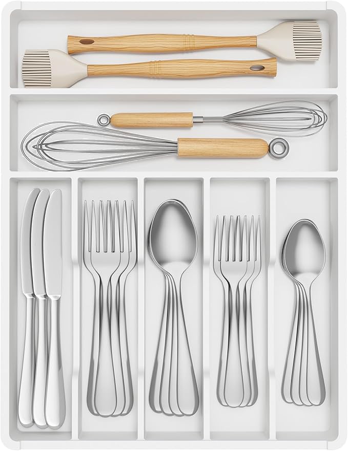 - Seven Compartments for Sorting: The silverware drawer organizer is divided into Seven compartments, ideal for categorizing and storing flatware, making it easy to pick out the items you need
