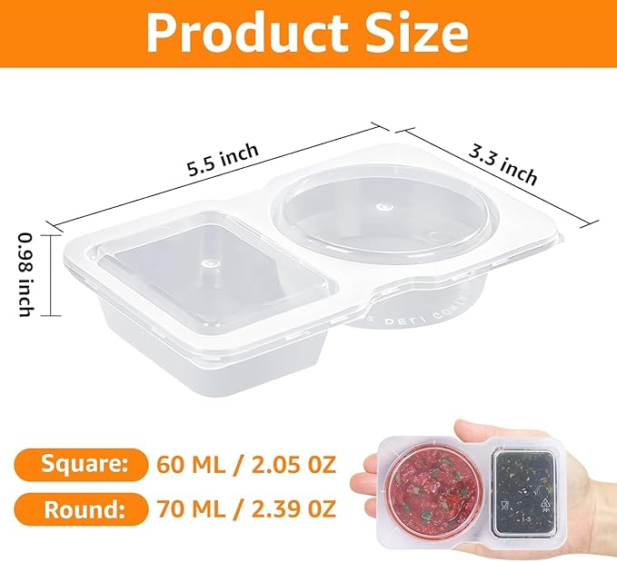 - [Reusable and Safe] - Made from high-quality, food-grade safe plastic, our double-layer condiment containers are sturdy, durable, and dishwasher-safe. Reuse them multiple times or dispose of them for hassle-free cleanup, ensuring long-term usability and convenience.