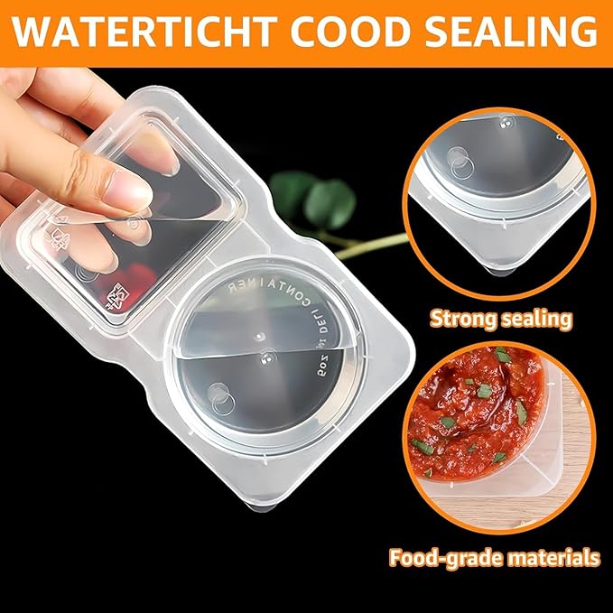 - [Versatile Packaging] - Double Compartment Condiment Containers with Lids are perfect for restaurants, food trucks, delivery services, special events, and leftovers. These containers provide exceptional convenience and functionality, making them ideal for various occasions.