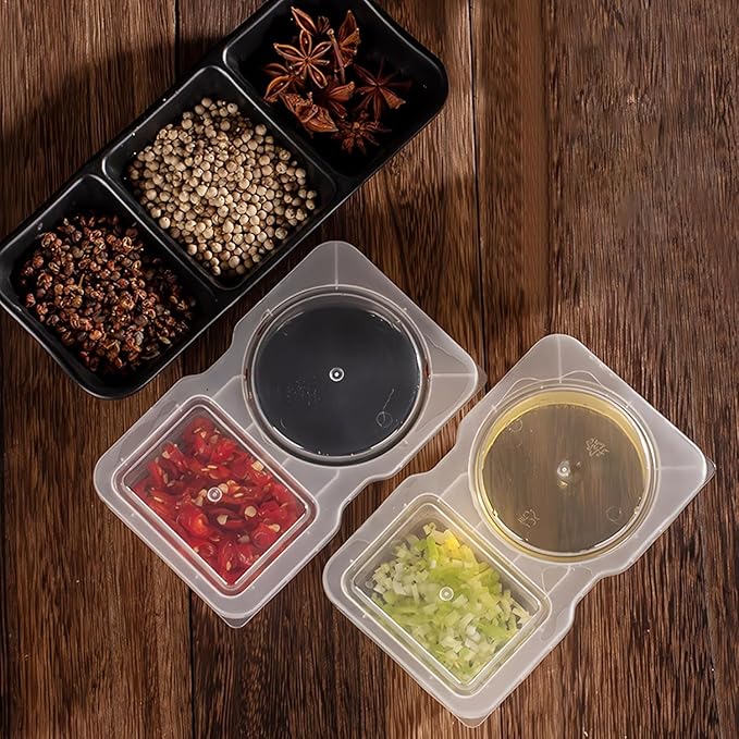 - [Superior Material - Crafted with care, our Double Compartment Condiment Containers are environmentally friendly and safe for everyday use. They are microwave-safe (temperature range: +120¡æ/-20¡æ) and refrigerator-friendly, offering practical and safe storage solutions.
