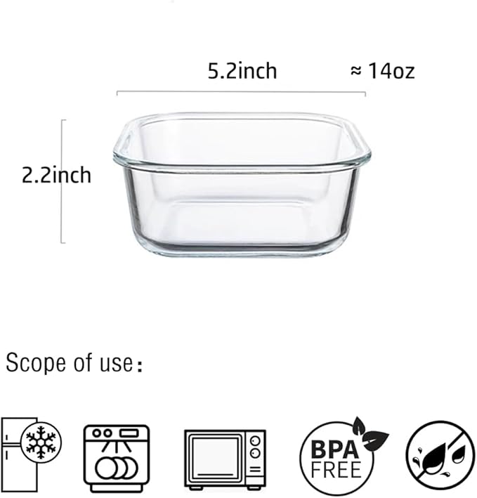 - SIZE: This Square Glassb Food Containers With Lids L*W 5.2in,H 2.5in,2-cup