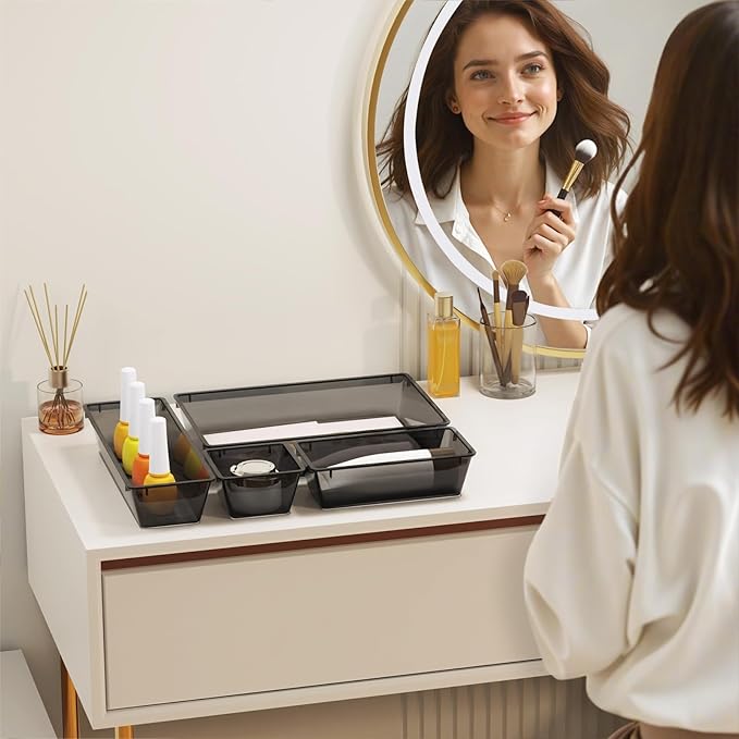 - 4. Multifunctional Storage: These storage organizers are suitable for organizing items in various drawers, such as dresser/bathroom/kitchen/office drawers, and can be used for storing cosmetics, toothpaste, pins, jewelry, stationery, craft supplies and more!
