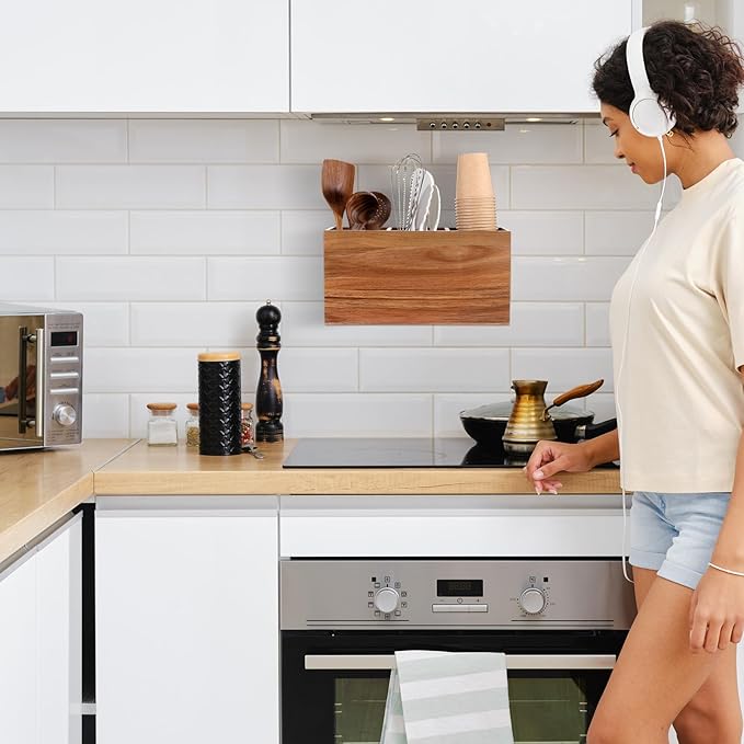 - Versatile & Space-Saving: Beyond kitchen utensils, this cooking utensil holder is ideal for storing cutlery, office supplies, crafts, or bathroom accessories. Its square shape fits snugly into corners, maximizing space efficiency while adding a rustic charm to your decor.