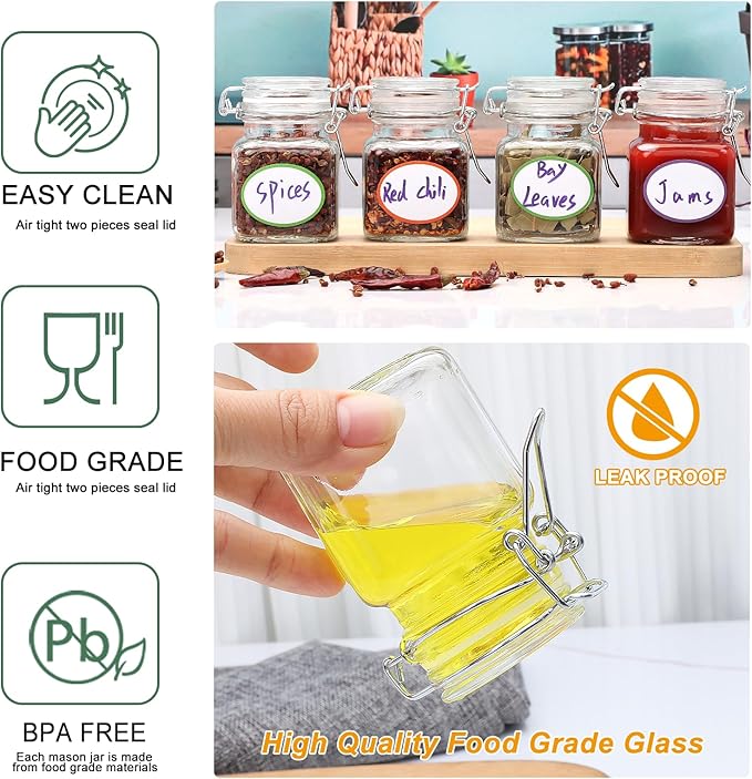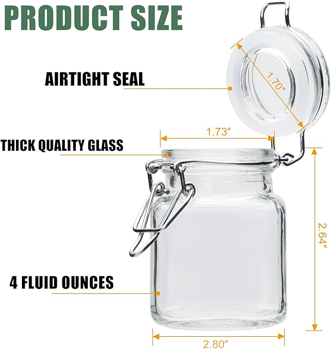 - Airtight Freshness & Security- Experience unmatched freshness with our glass spice jars with lids, featuring airtight hinged lids and rubber gaskets. Ideal for preserving the aroma and taste of spices, herbs, and more.