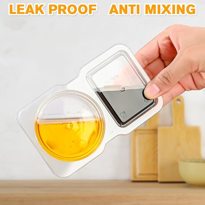 - 【Double Compartment Design】Dual-section snack containers keep two foods or sauces separated, preventing flavor transfer while aiding portion control and organization. The partitioned design ensures snacks stay crisp and sauces fresh, ideal for pairing dips with veggies or nuts with dried fruits without compromising texture.