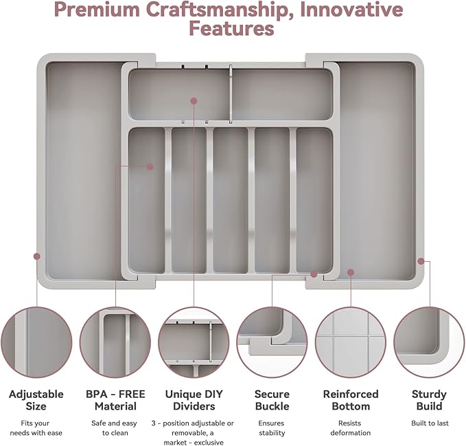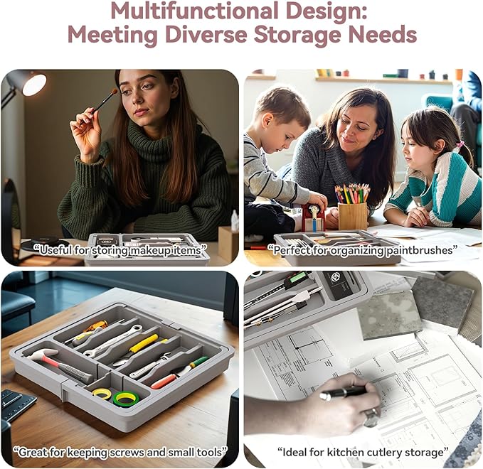 - INNOVATIVE FEATURES: The unique buckle design is a game - changer. It not only allows for secure and smooth adjustment of the dividers but also prevents them from accidentally coming off the rails. This means you can customize the layout of the compartments to perfectly suit your collection of utensils. Additionally, this organizer isn't limited to just kitchen cutlery. Its versatile design makes it suitable for organizing small tools in a home workshop or office supplies like pens and scissors, truly meeting diverse storage needs around your home