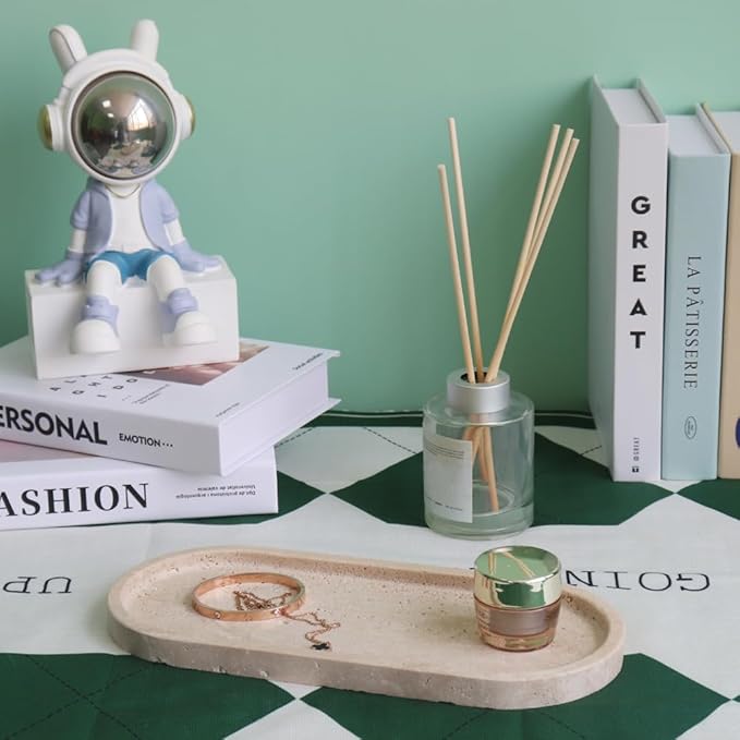 Natural Marble Tray, Oval Vanity Decorative Tray for Bathroom Counter, Countertop Stone Organizer, Catchall Tray for Kitchen, Perfume, Candles, Jewelry Dish Decorative Tray