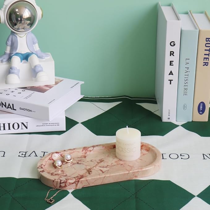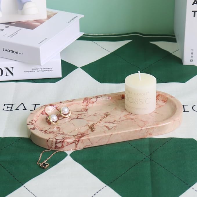 Natural Marble Tray, Oval Vanity Decorative Tray for Bathroom Counter, Countertop Stone Organizer, Catchall Tray for Kitchen, Perfume, Candles, Jewelry Dish Decorative Tray