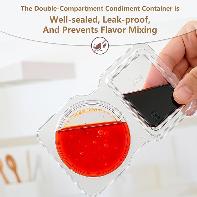 - Versatile Dual-Compartment Design: suitable for storing various condiments and snacks. For example, salad, ketchup, nuts, office snacks, etc. Dual compartment design to prevent flavor mixing.