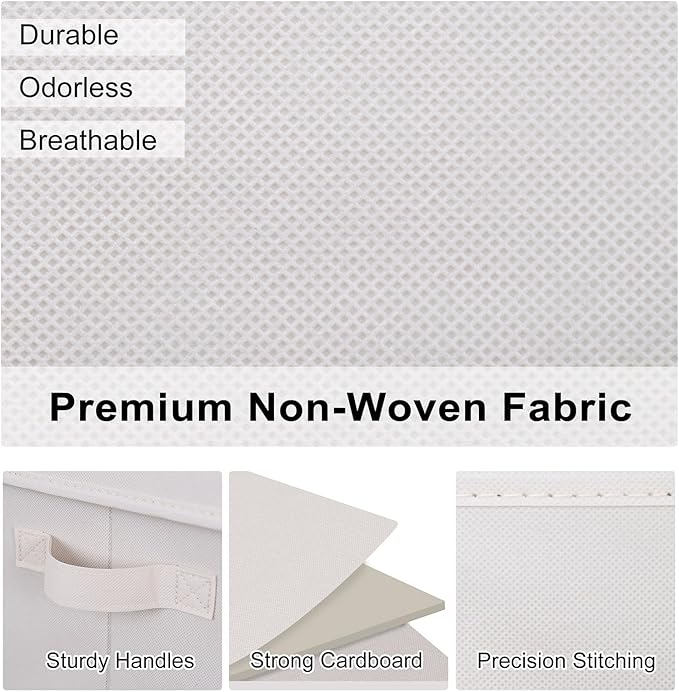 - Premium Materials: Made of strong non-woven fabric and cardboard, these fabric storage bins keep shape and are perfect for shelf, closet, or under-bed storage.