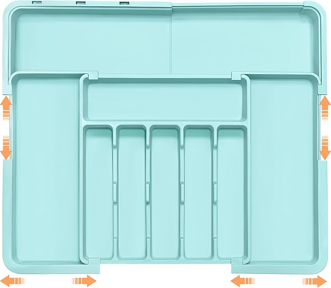 Silverware Organizer Expandable Kitchen Utensil Drawer Organizer Large BPA Free Adjustable Cutlery Silverware Tray for Spoons Forks Knives Storage Divider for Kitchen Flatware 6-9 Slots Turquoise