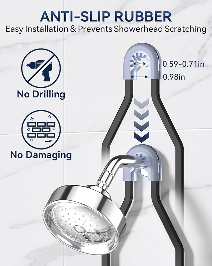 - Easy Installation with No Drilling: Install in minutes without drilling or special tools - ideal for renters! Although designed for showerheads, you can also hang the shower hanging caddy anywhere in your home using a hook or nail, but please note that it needs to be mounted on a smooth surface