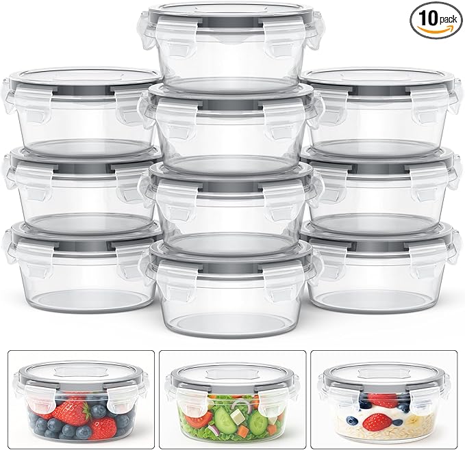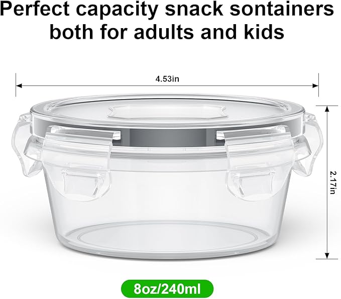 10 Pack Reusable Snack Containers with Lids 8 oz for Kids Toddler Adults,Meal Prep Overnight Oats Salad Food Storage Containers BPA Free Pp Food Grade