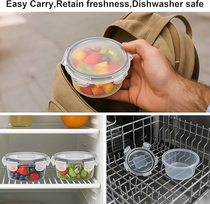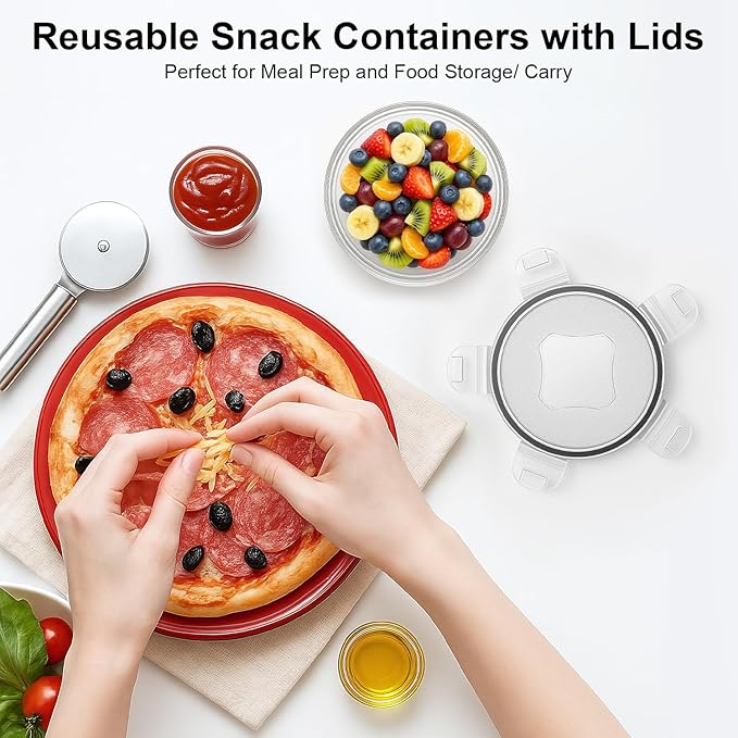 - Various Uses :This reusable snack containers with lids nice for many uses---kitchup, road trip snacks, Veggies, dip or (dry) fruit, crackers, oil or mayo, vinegar ect. It can be used as a portion food measuring, left over storage, It's a nice condiment for an easy storing in the refrigerate. So that you can easily portion snack in the refrigerate for easy grip.