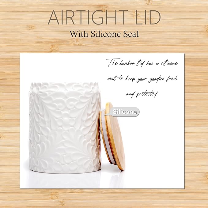 - Thicker Bamboo Lids Seal in the Freshness: Each kitchen canister is made from food-grade ceramic without lead; Also, ceramic food storage containers come with 1" thick bamboo lids equipped with silicone seals that block out air and moisture