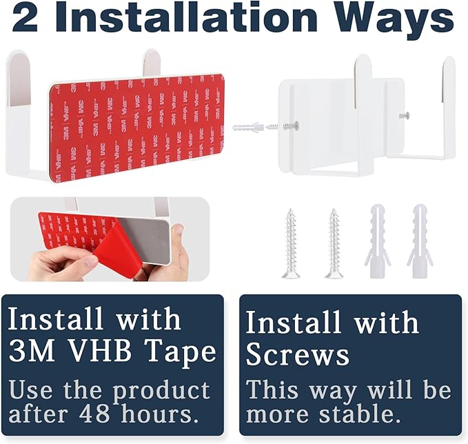 - 【Easy To Install】Two installation methods: ①Do not have to drill holes on the wall, without tools and screw, just teal off the sticky strip and stick on the wall. Widen the paste board, sticky more solid. Affixed to the wall, don't place anything on the shelf within 48 hours. ②And we also provide screw installation kit for people who need to drill.