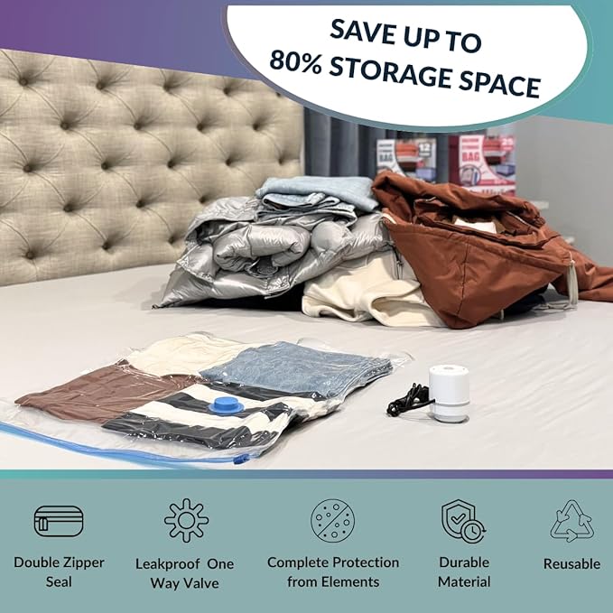 - Space Saving Solution: Our space saver vacuum storage bags are perfect for compressing bulky items like comforter, pillow, sweater, bedding and clothing for organization and storage