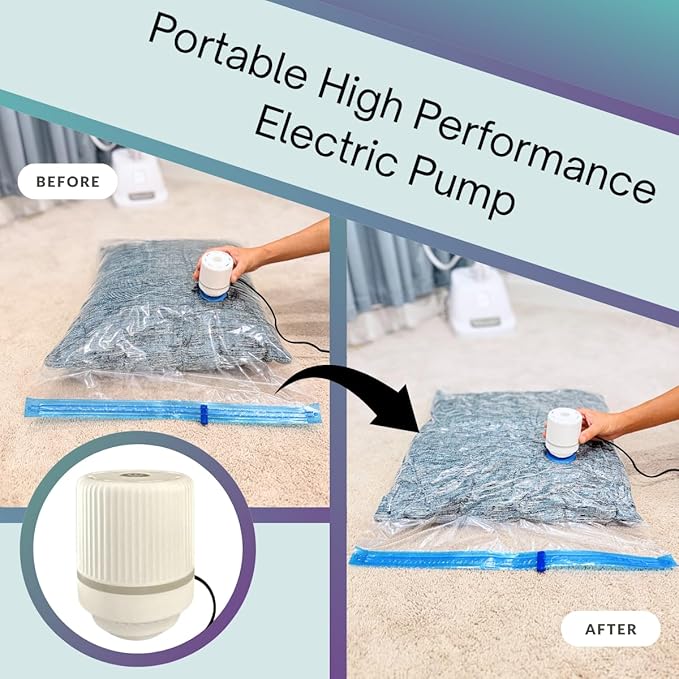 12 Pack Vacuum Storage Bags with Electric Pump, Compression Space Saver for Comforters, Bedding, Blanket Storage, Vacuum Seal Bags for Clothing, Luggage and Closet Organizer,