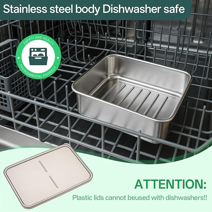 - Stainless Steel Longevity: Built with 304 stainless steel, these odor-free meal prep containers resist dents, rust, and stains. Unlike fragile glass or plastic, the sturdy bacon container for refrigerator withstand daily use and dishwasher cycles, ensuring years of reliable kitchen storage.