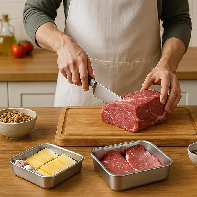 - Airtight Refrigerator Storage: Each stainless steel bacon storage container for fridge features a plastic lid to block air exposure. This airtight design locks in flavor for bacon, cheese, or deli meats, preventing cross-odor and maintaining freshness.