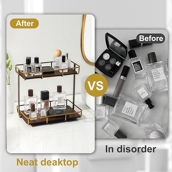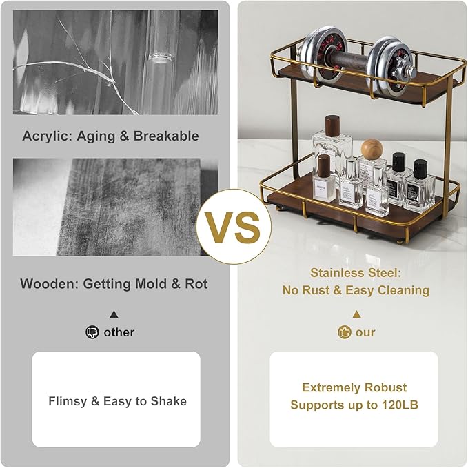 Bathroom Organizer Countertop Perfume Organizer Makeup Organizer Cosmetics Storage Display Rack Vanity Tray Dresser Stainless Steel Gold Shelf Wooden Tray
