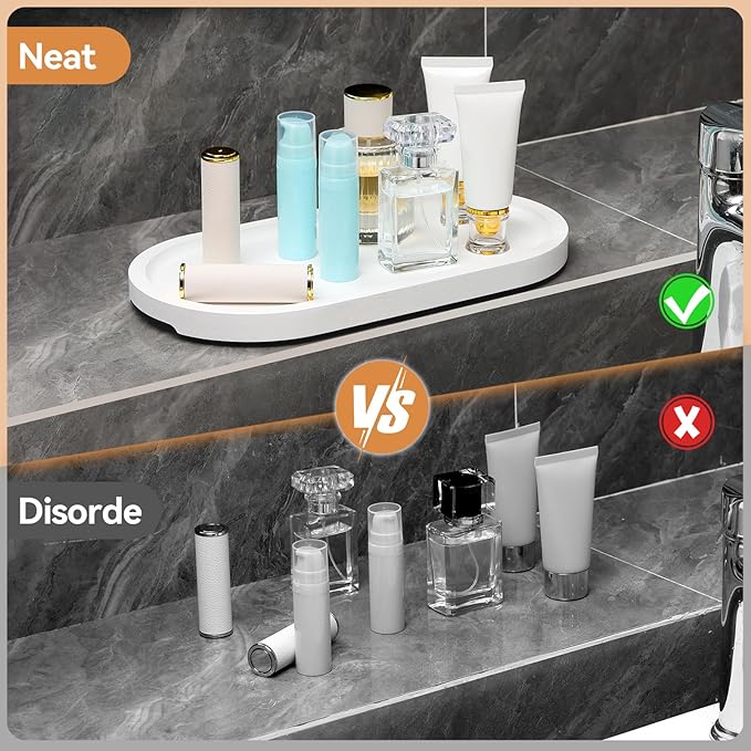 - 【Sleek and Functional Bathroom Tray】 This oval bathroom tray provides an elegant way to organize your essentials like soap dispensers, candles, or skincare bottles while keeping your bathroom counter clean and stylish