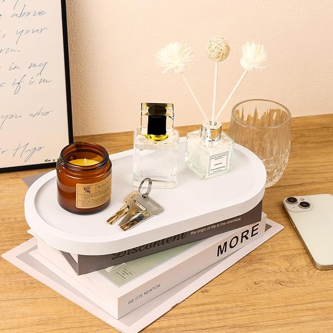 - 【Thoughtfully Designed for Everyday Use】 With its minimalist oval shape and neutral tone, this vanity tray complements various home styles while offering practical storage and a natural decorative touch