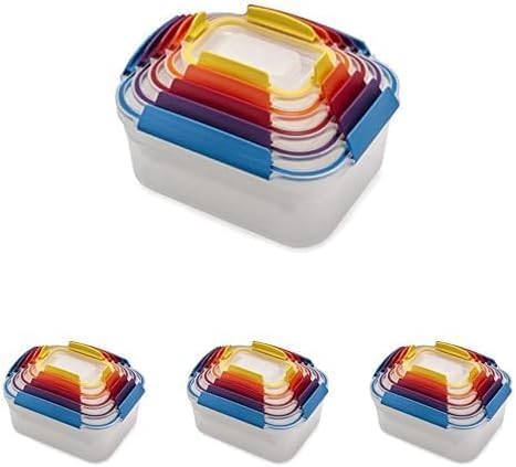 Joseph Joseph Nest Lock Plastic BPA Free Food Storage Container Set with Lockable Airtight Leakproof Lids, 10-Piece, Multi-Color (Pack of 4)