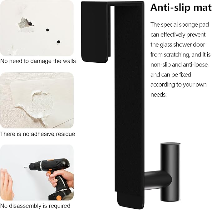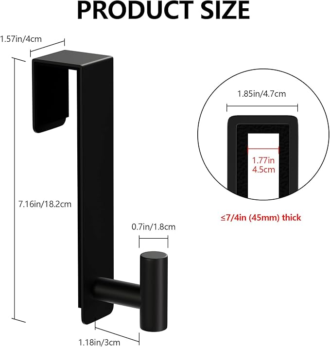 - [ Non drilling door hook ] : Hook onto the edge of the bathroom door or bedroom without the need for drilling, tools, or hardware. The ideal space saving solution for shower rooms and small bedrooms.