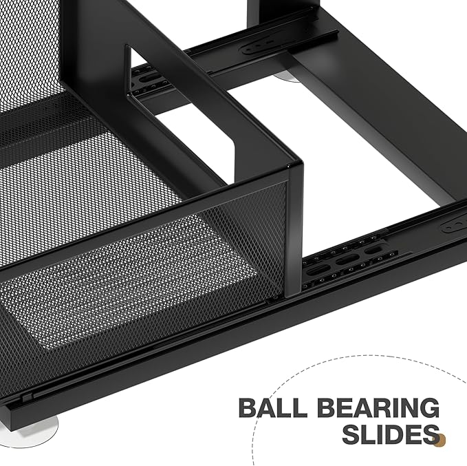- 【Supreme-Smooth Glides】Built with heavy-duty ball-bearing slides,pull out cabinet organizer glides out smoothly and quietly,even when storing bottles,detergents,or heavy cleaning supplies.