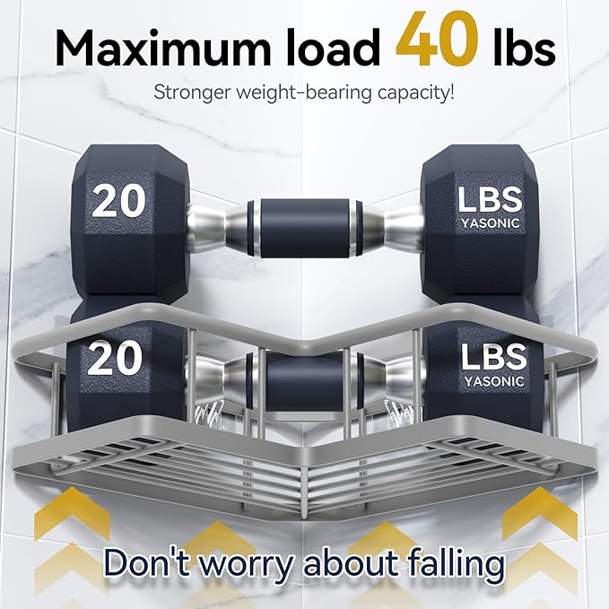- SPACE-SAVING CORNER DESIGN:Engineered with L-shaped shower shelves that perfectly hug 90° wall corners. Our corner shower shelf provides 30% more capacity than standard models to store 19+ full-size shampoo bottles