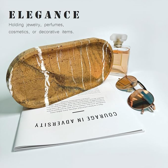 - MULTI-PURPOSE SIZE 10X5 INCHES: This vanity tray fits perfectly in any room. Use it as a bathroom tray for toiletries, a perfume display stone tray, a coffee table stone tray for décor, a nightstand stone catchall tray for keys and remotes, or an entryway catchall tray to keep essentials organized