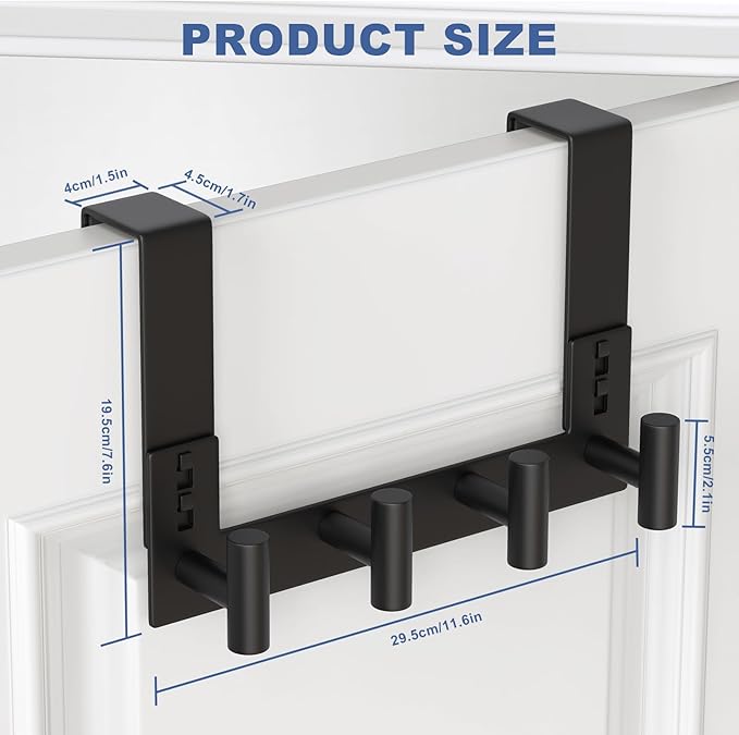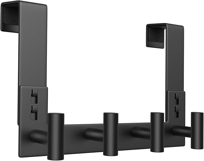 WUIVIUT Door Towel Rack, Wooden Door Metal Hook, Heavy-Duty Storage Clothes Hanger, Outerwear Backpack (4 Hook, Fits 1-3/4'' Thick)