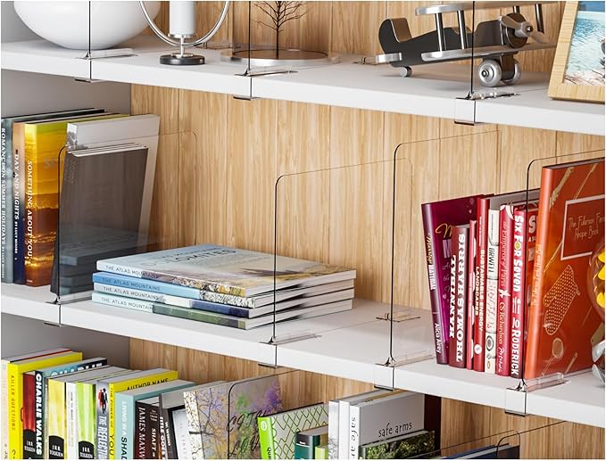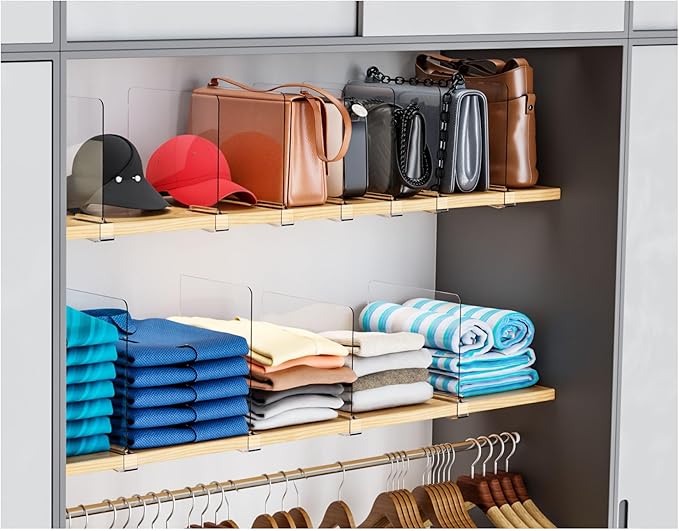 - 【Multipurpose Closet Shelf Dividers】keeps your shelves looking tidy while allowing easy visibility of stored items,Very suitable as towel organizer for closet,sweater organizer for closet,sweatshirt organizer for closet,bookshelf organizer,shirt organizer for closet,shelf organizer for bedroom,t shirt organizer for closet,top shelf closet organizer,bookshelf dividers,shelf separators in closet