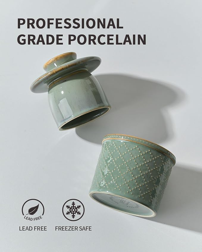 - Durable & Healthy Porcelain: XELA butter dish with lid is made from durable porcelain, premium lead-free, chip-resistant. Never worry about harmful substance leaching into your food. You don't have to worry about harmful substances leaching into your food, and you can safely put this butter keeper in the refrigerator and dishwasher.