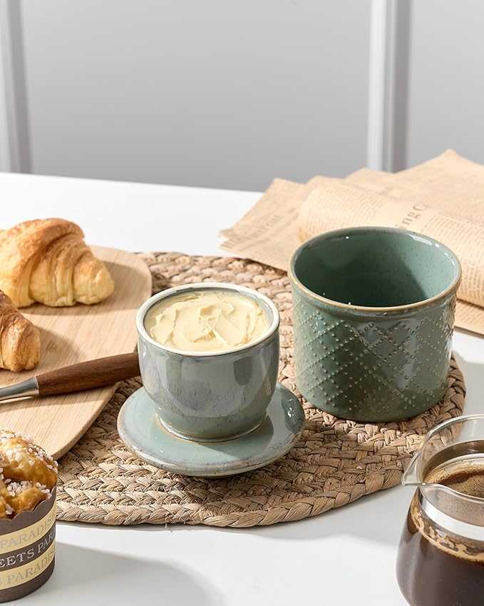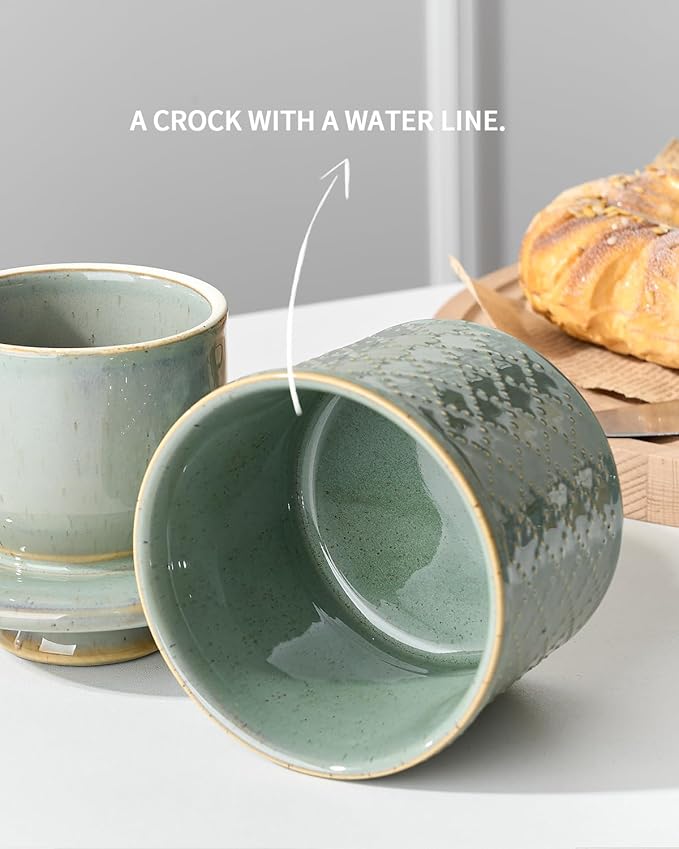 - Say Goodbye to Cold & Hard Butter: Enjoy your soft and fresh butter and keep away from the refrigerator from now on! The two-piece design features an inverted bell-shaped lid and crock base, and water creates an airtight seal between the lid and crock, keeping butter soft and spreadable while protecting against airborne dust particles, insects, and bacteria. Give it as a housewarming, holiday, wedding gift, they will be amazed that the french butter dish is a game changer for storing butter.
