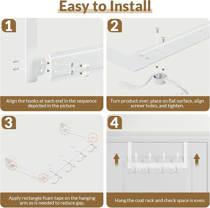 - Quiet & Scratch-Free Design: The over the door towel racks for bathroom is padded with soft sponge to avoid noise and prevent scratches. The smooth door hooks prevent scratching hands and protect clothes from damage