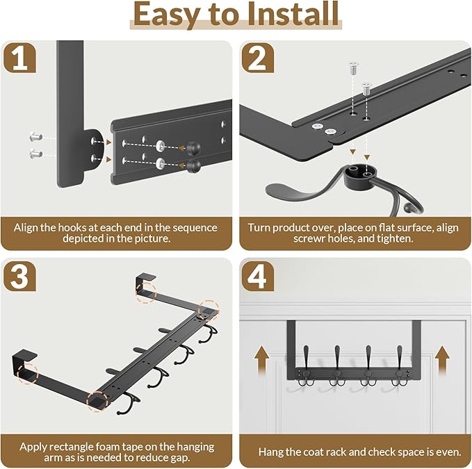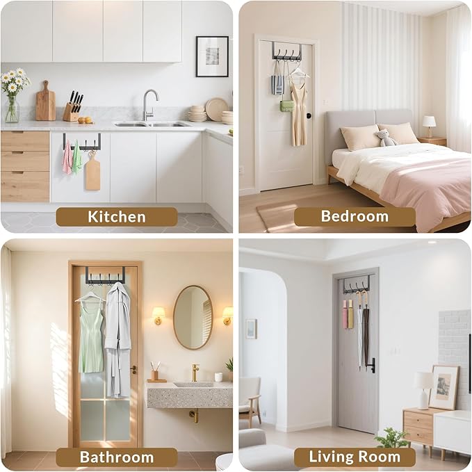 - Multi Purpose Door Hanger: This coat hanger features 4 sturdy tri hooks, perfect for organizing messy coats, towels, hats, backpacks, keys, and more. Ideal for bedrooms, kitchens, dorm room, bathrooms, closets, or garages – instantly transform any cluttered space into a tidy one