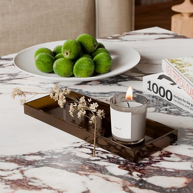 11" x 4.3" Bathroom Vanity Tray Acrylic Decorative Counter Organizer for Soap Dispenser, Perfume, Candle, Makeup - Rectangle Tray for Sink, Toilet Tank, Dresser Home Decor, Small Brown