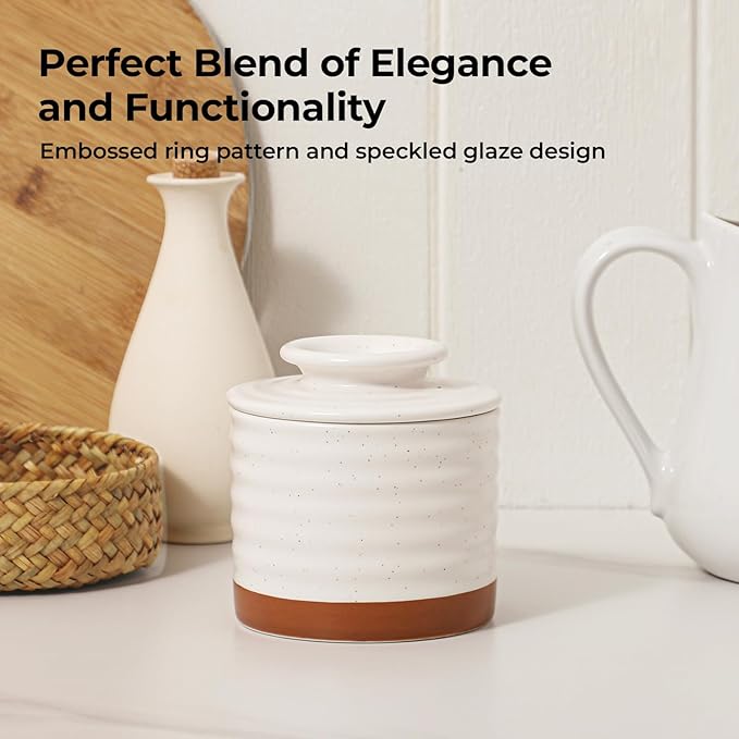 - Easy to Use for All Types of Butter: This butter crock for countertop accommodates 1.5 sticks of butter, making it ideal for daily use and family servings. The vintage French design adds charm to any kitchen and makes a great gift for occasions like housewarmings, birthdays, Christmas, Thanksgiving, New Year, housewarmings, weddings, or any special occasion