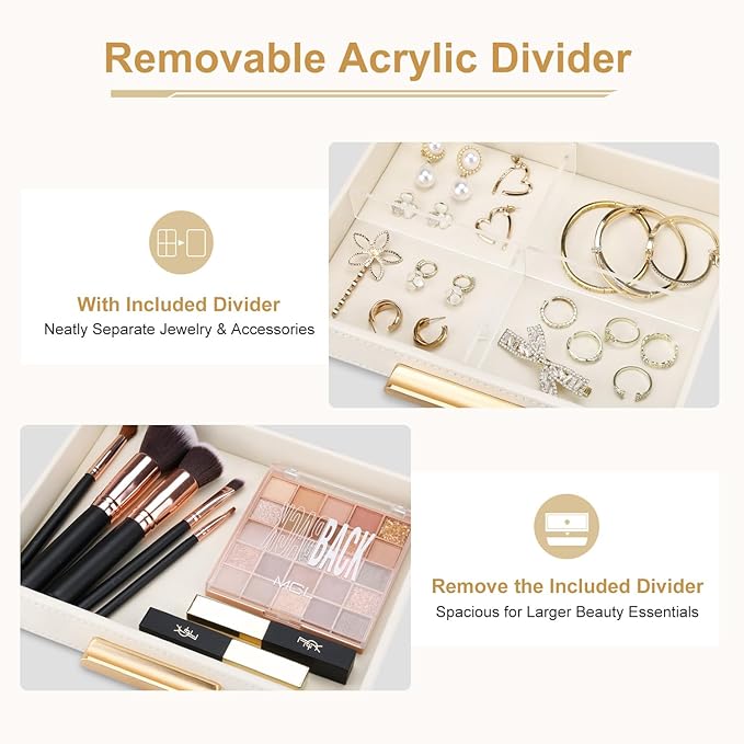 - 【Customizable Drawer Organizer】 Comes with a removable acrylic cross divider for the drawer, so you can organize the jewelry or small accessories by category, or remove it for larger items. Flexible storage that adapts to your needs.