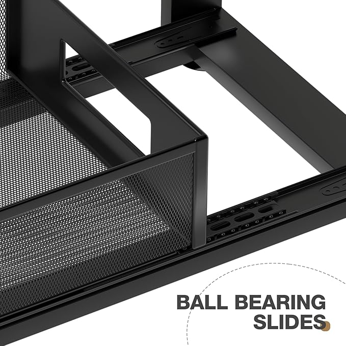 - 【Supreme-Smooth Glides】Built with heavy-duty ball-bearing slides,pull out cabinet organizer glides out smoothly and quietly,even when storing bottles,detergents,or heavy cleaning supplies.