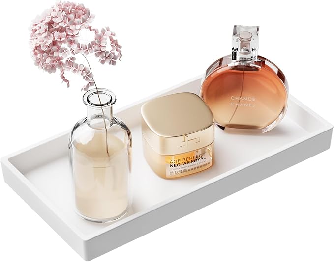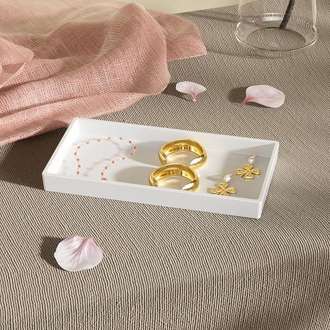 Vanity and Bathroom Tray, 7.7" ABS Countertop Organizer,Waterproof Vanity Tray for Toilet Tank,Perfume,Soap,Keys,Bathroom Accessories,Kitchen and Bath Trays,Non Slip Small Trays,White
